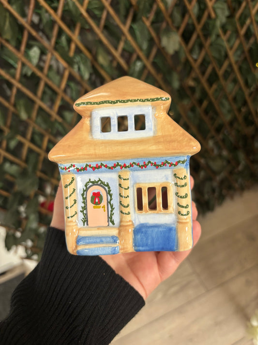 Blue House Tealight Holder